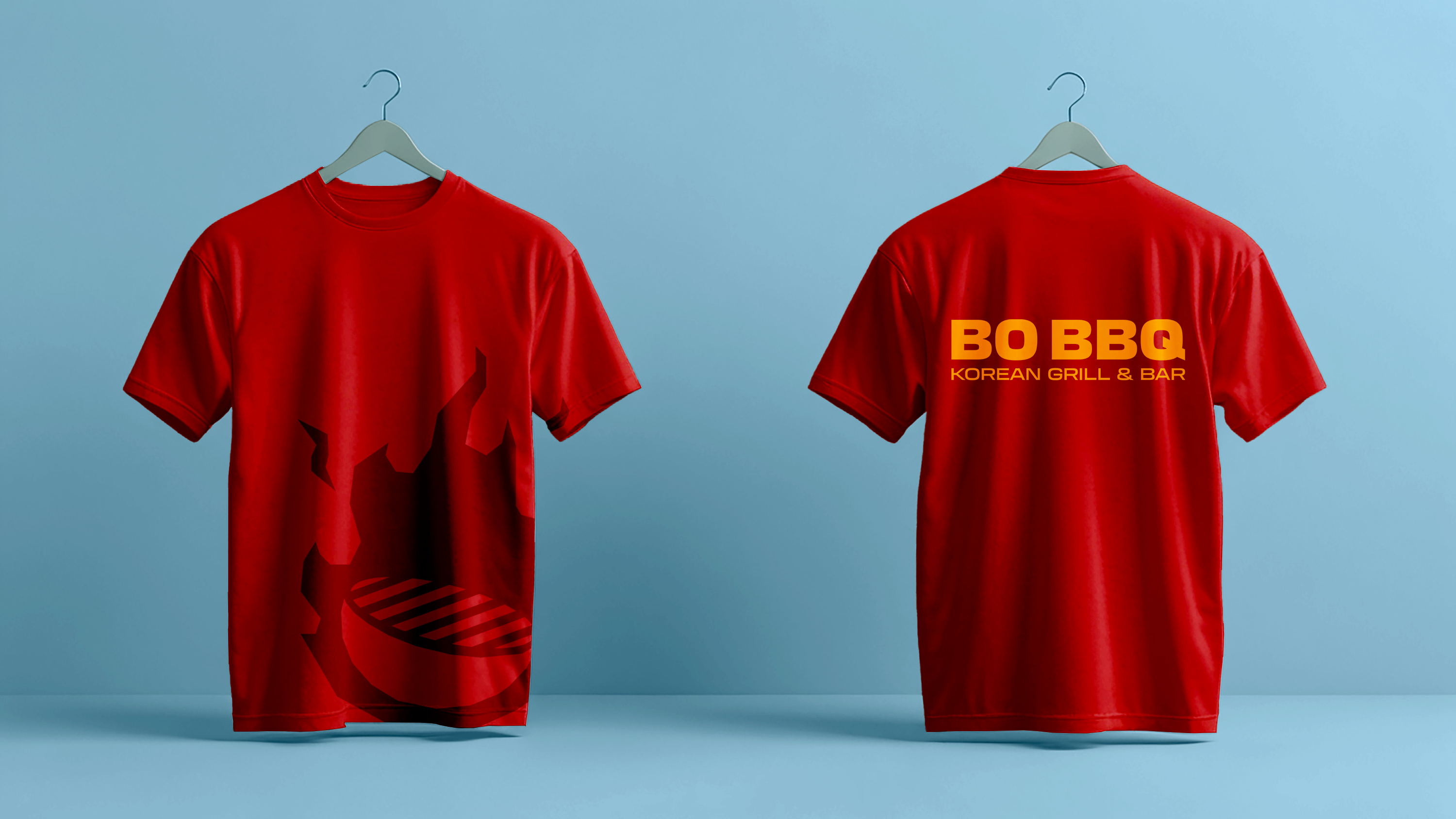 Employee T-shirts play an important role in extending BO BBQ’s new brand identity by carrying its colors, typography, and visual style into the customer-facing experience. A cohesive shirt design makes staff instantly recognizable, helping diners quickly identify servers, ask questions, and feel more supported throughout the meal. This visibility is especially valuable in a Korean BBQ setting, where guests may need guidance or reassurance.